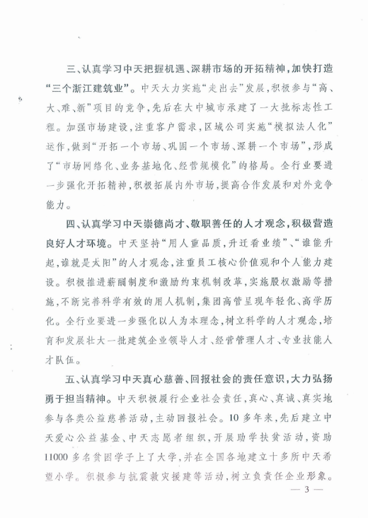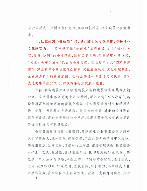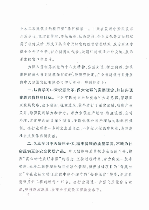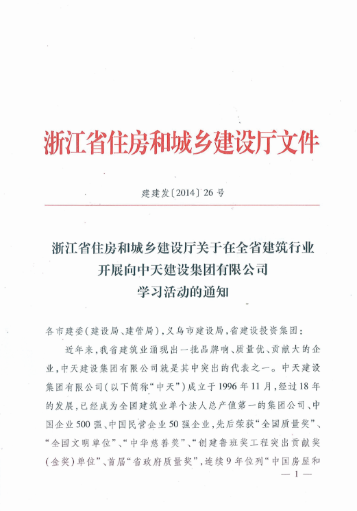 《浙江省住房和城乡建设厅关于在全省建筑行业开展向918搏天堂建设集团有限公司学习活动的通知》